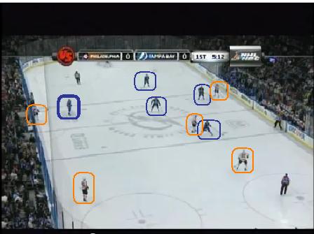 For instance, in the photo above, which was taken from the recent Flyers/Lightning game, you will notice that the puck is not in deep and the Flyers have clear possession of the puck (the right defensemen). In this instance, the Lightning (circled in blue) do not want to forecheck. Instead they trap the neutral zone and wait for the puck to be brought up ice where they will attempt to turn the puck over.
