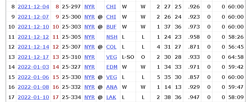 The above is Georgiev’s run from December through early January, and it’s a heck of a run. Two clunkers, for sure, but the rest is borderline domination from him. This is what his best case scenario would be in the playoffs.