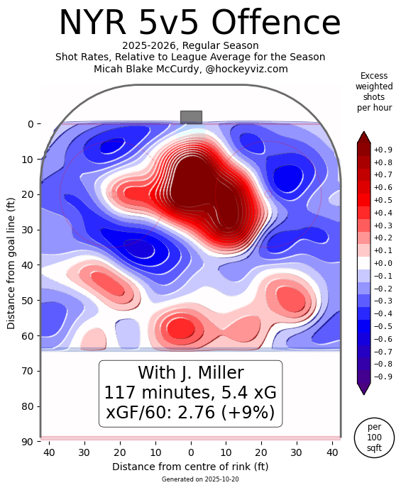 As an aside, Miller and Zibanejad routinely draw top competition. This may impact their finishing rates with stronger defensively play in front of them, but it’s anecdotal and it’s exceedingly difficult to prove that.