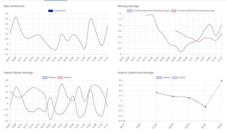 Now the question with Borgen isn’t whether he is currently a top three Rangers defenseman, it’s whether he is simply off to a hot start that will regress. Borgen’s previous three seasons had all shown him to be declining, but this year is by far his best defensively, almost twice as good statistically as his previous best. It’s only 18 games into the season, so there is plenty of time for this to regress to his previous career path, but there is cause for optimism.